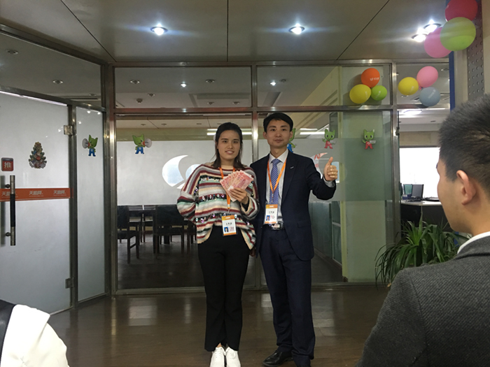 這個月又是豐收的一個月,接下來頒發的是我們公司的冠亞季軍獎,3月的冠亞季軍都是美女,我們公司的男生該要著急了。